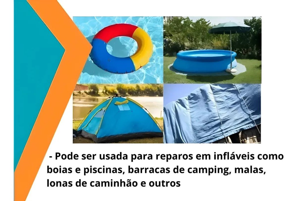 - Para reparos em infláveis, bóias, piscinas, barracas de camping, malas, lonas de -capota náutica e outros materiais.