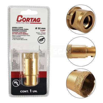| Nome | Serra Copo Diamantado P/Esmerilh 32MM Cortag - Unid |