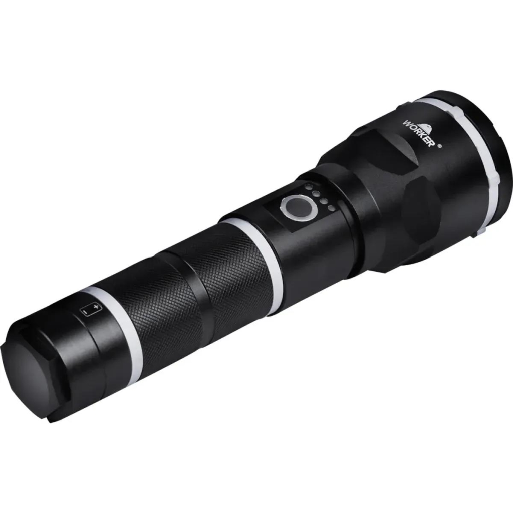 A Lanterna de LED Cree Recarregável 460lm 10W da Worker é uma poderosa aliada para iluminar suas atividades ao ar livre ou em locais com pouca luminosidade.
