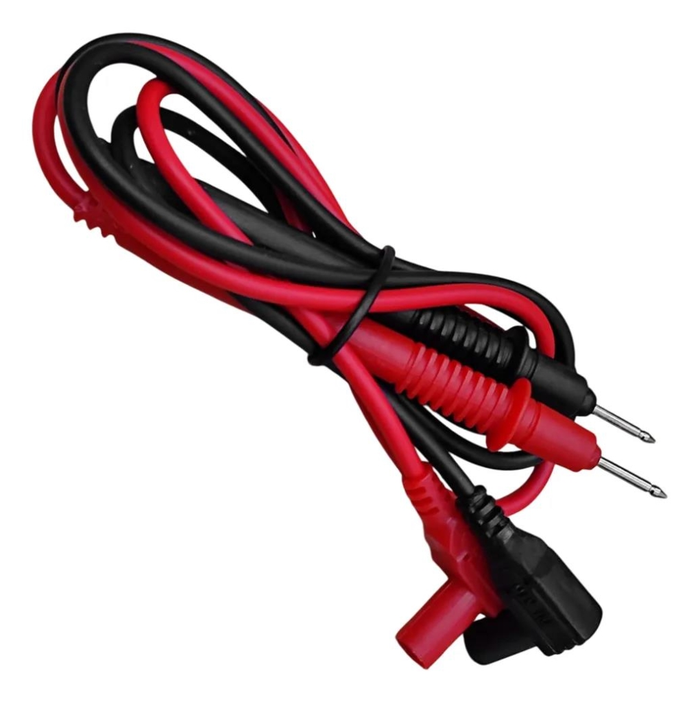 Medição de corrente contínua, tensão alternada e contínua, resistência elétrica, polarização de transistor e teste de continuidade;