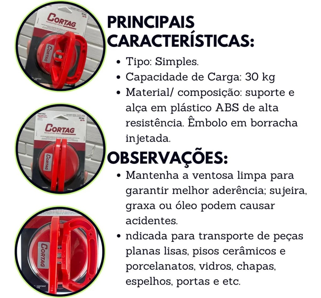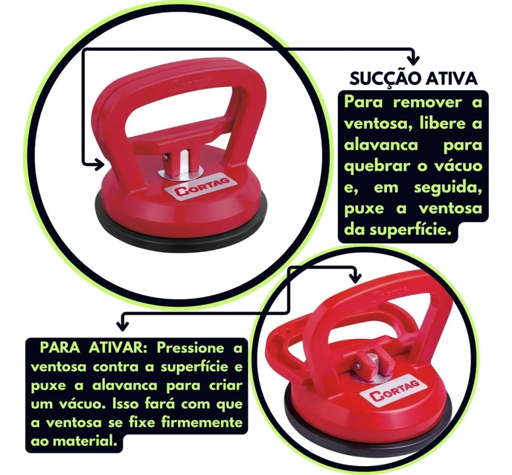 -Limpeza: Mantenha a ventosa limpa para garantir uma aderência eficiente. Evite usar a ferramenta suja, com graxa ou óleo, para prevenir acidentes.